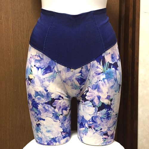 【レディース・補正下着】ワコール 肌リフト 幅広ベルトと美しい花柄スキン素材 ガードル 日本製 ネイビーブルー Mサイズ