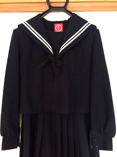 スタンダードな濃紺セーラー服に黒いスカーフもシックです。