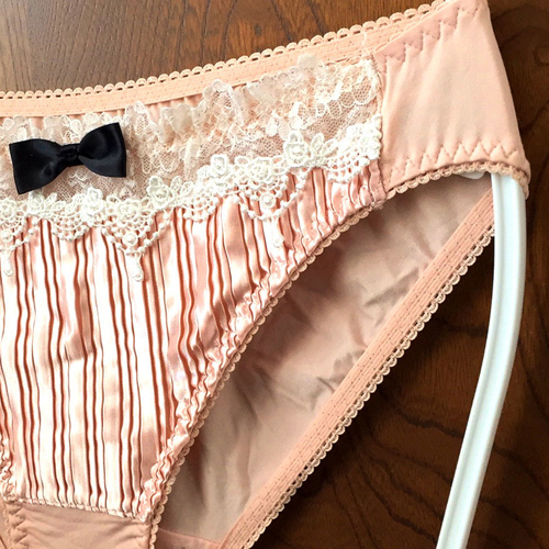 【レディース・下着】しまむら メイドさんっぽくてめちゃ可愛い つやつや輝く光沢サテン 縦折りもすっごく綺麗♪ピンク Mサイズ