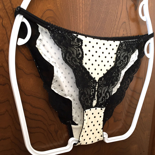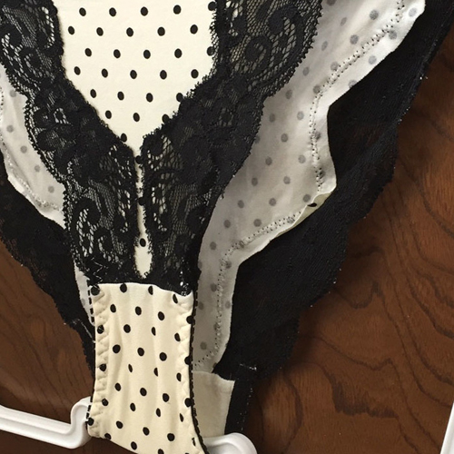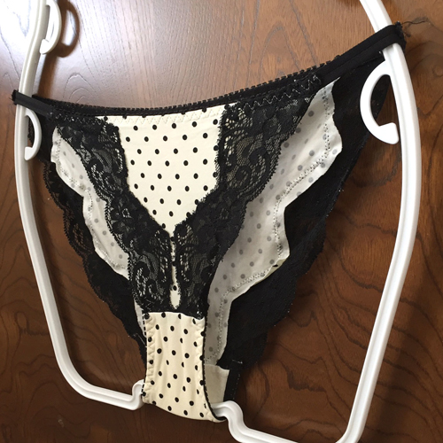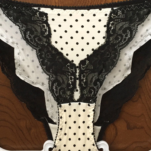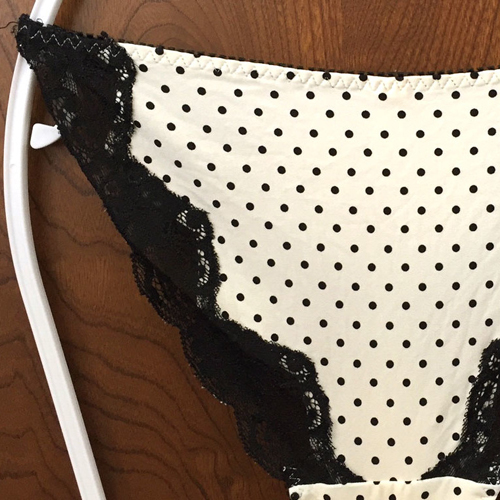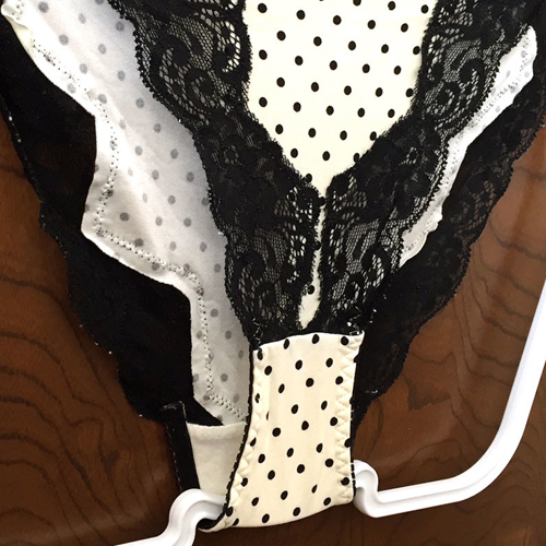 【レディース・下着】ピーチジョン ドット模様が可愛い~ラインを彩るフラワーレースがめちゃ綺麗なランジェ♪白×黒 Mサイズ
