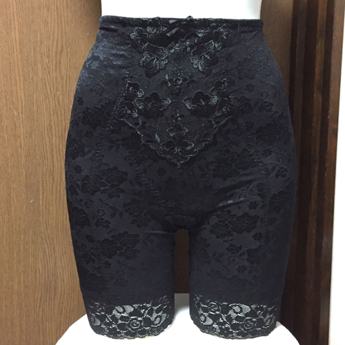 【レディース・補正下着】しまむら 豪華で美しい花柄ジャガード素材 ロングガードル 黒 82サイズ