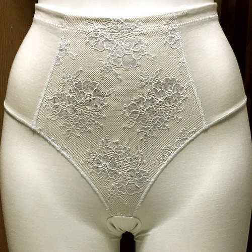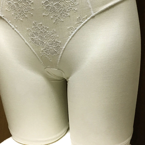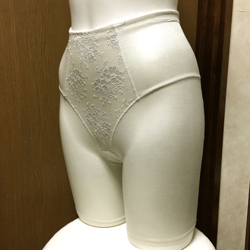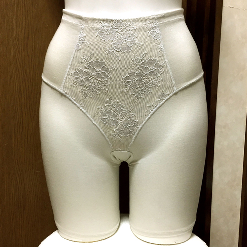 【レディース・補正下着】ルシアン エレガントな花柄レースとすべすべストレッチ セミロングガードル♪アイボリー Mサイズ