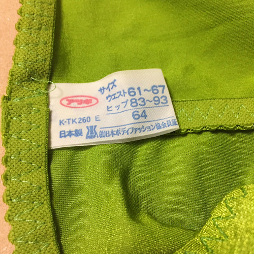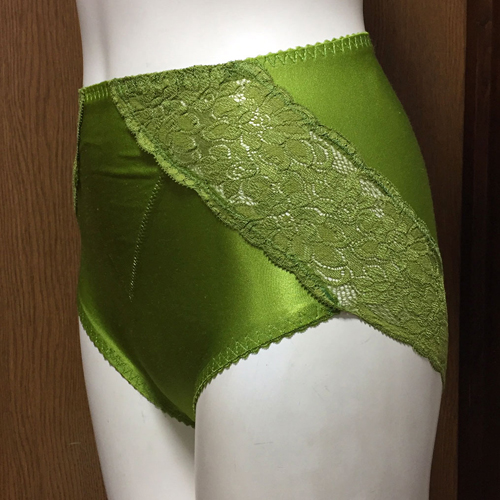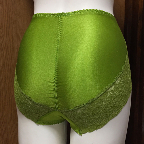 【レディース・補正下着】アツギ つややかな光沢感あるストレッチ 幅広い豪華レース きみどり色 日本製 Mサイズ