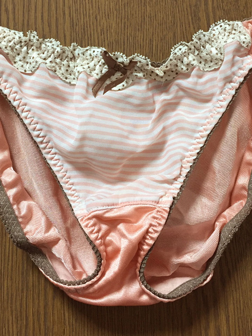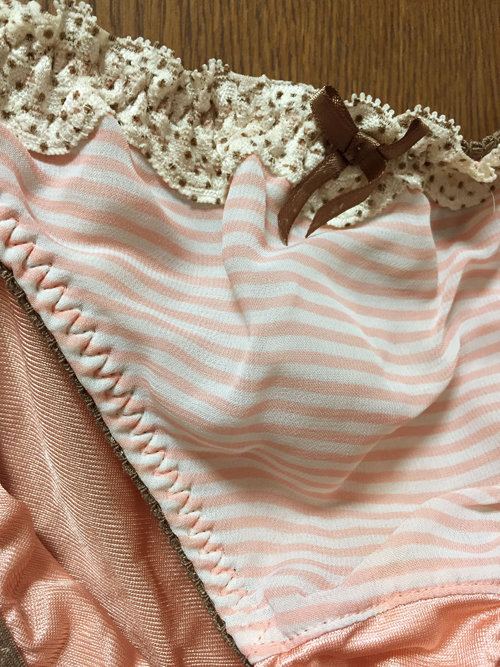 【レディース・下着】いずみ 透け感ある可愛いしましまボーダー 輝きある光沢ストレッチ サーモンピンク Lサイズ