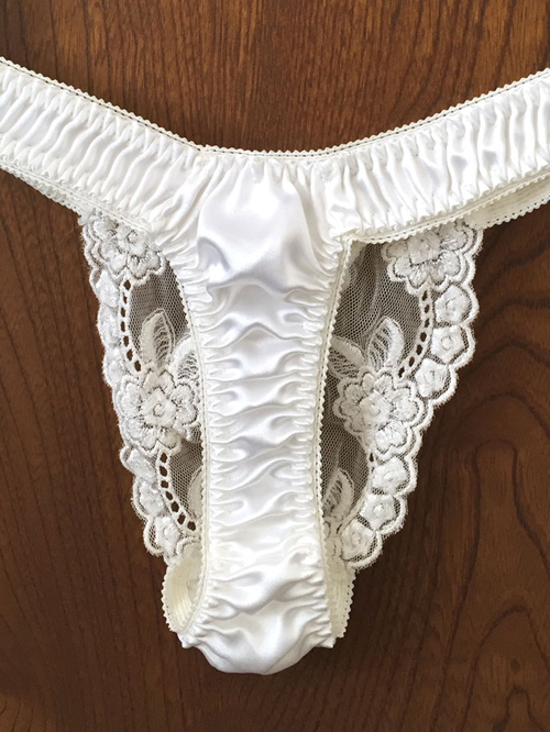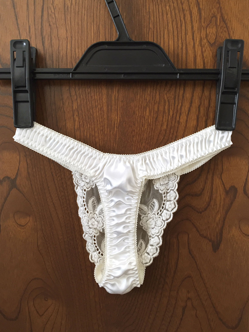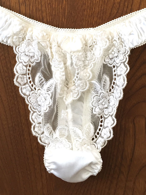 【レディース・下着】ラ・ポーム 綺麗な花刺繍レース 光沢サテンが美しいTバック パンティ 白 Mサイズ 日本製