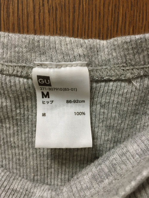 【レディース・下着】GU(ジーユー)柔らかコットン ストレッチ性も良いリブ折り パンティ グレー Mサイズ