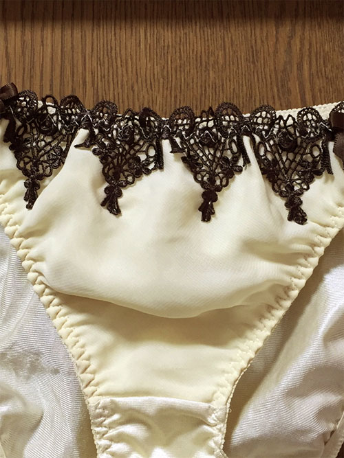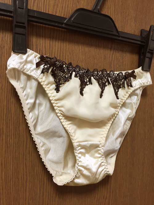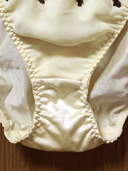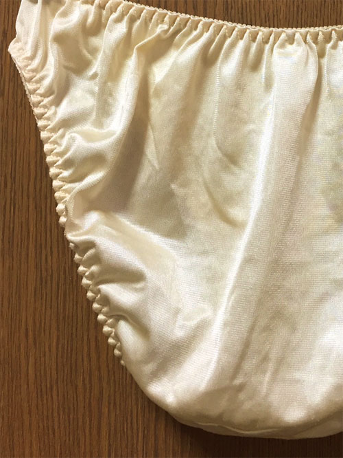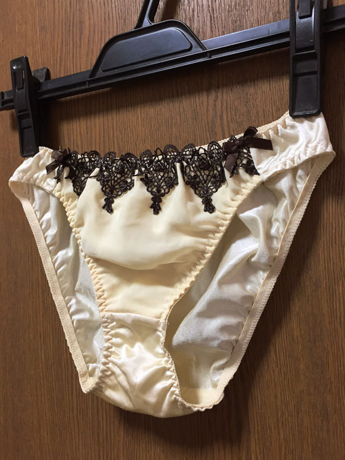 【レディース・下着】ハニーズ つやつや光沢トリコット 薄手シフォンとクラシカル風レース パンティ ベージュ Mサイズ