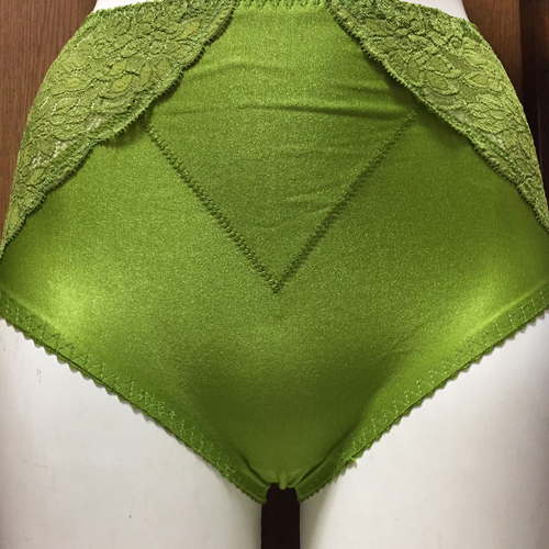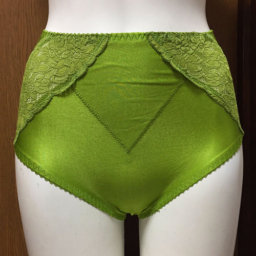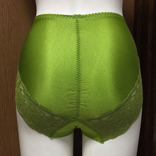 【レディース・補正下着】アツギ つややかな光沢感あるストレッチ 幅広い豪華レース きみどり色 日本製 Mサイズ