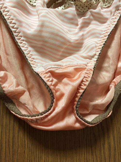 【レディース・下着】いずみ 透け感ある可愛いしましまボーダー 輝きある光沢ストレッチ サーモンピンク Lサイズ