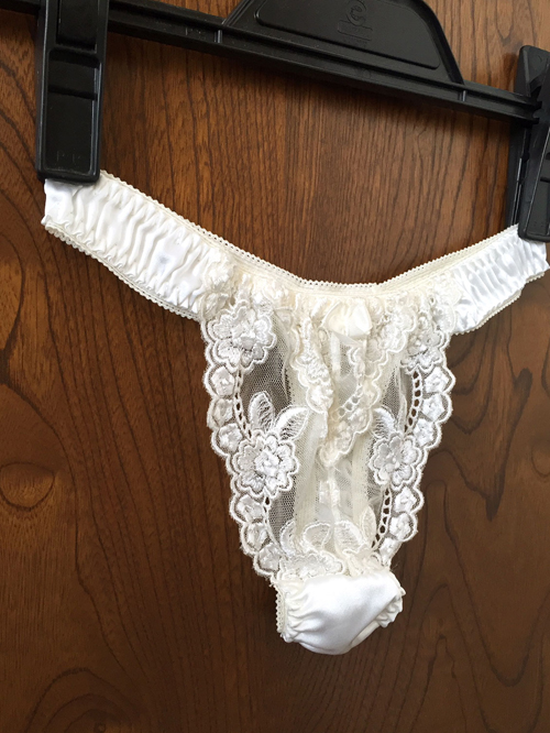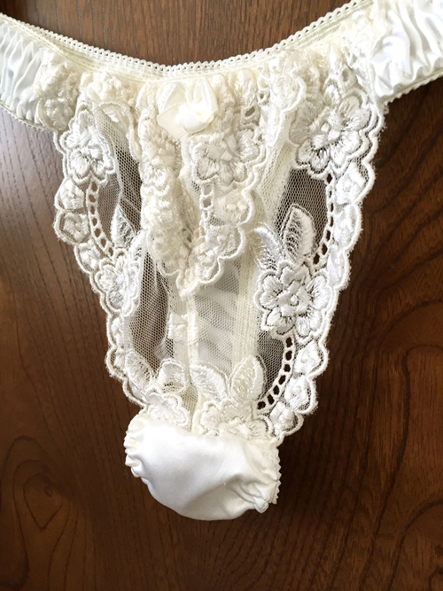 【レディース・下着】ラ・ポーム 綺麗な花刺繍レース 光沢サテンが美しいTバック パンティ 白 Mサイズ 日本製