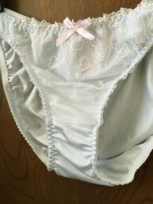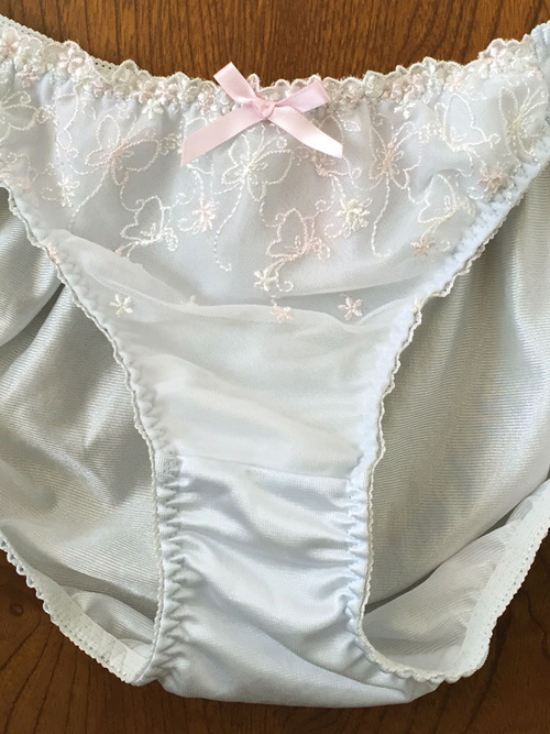 【レディース・下着】チュチュアンナ 蝶々やお花いっぱいのシフォンレース つやつや光沢トリコット パンティ 淡い水色 Mサイズ